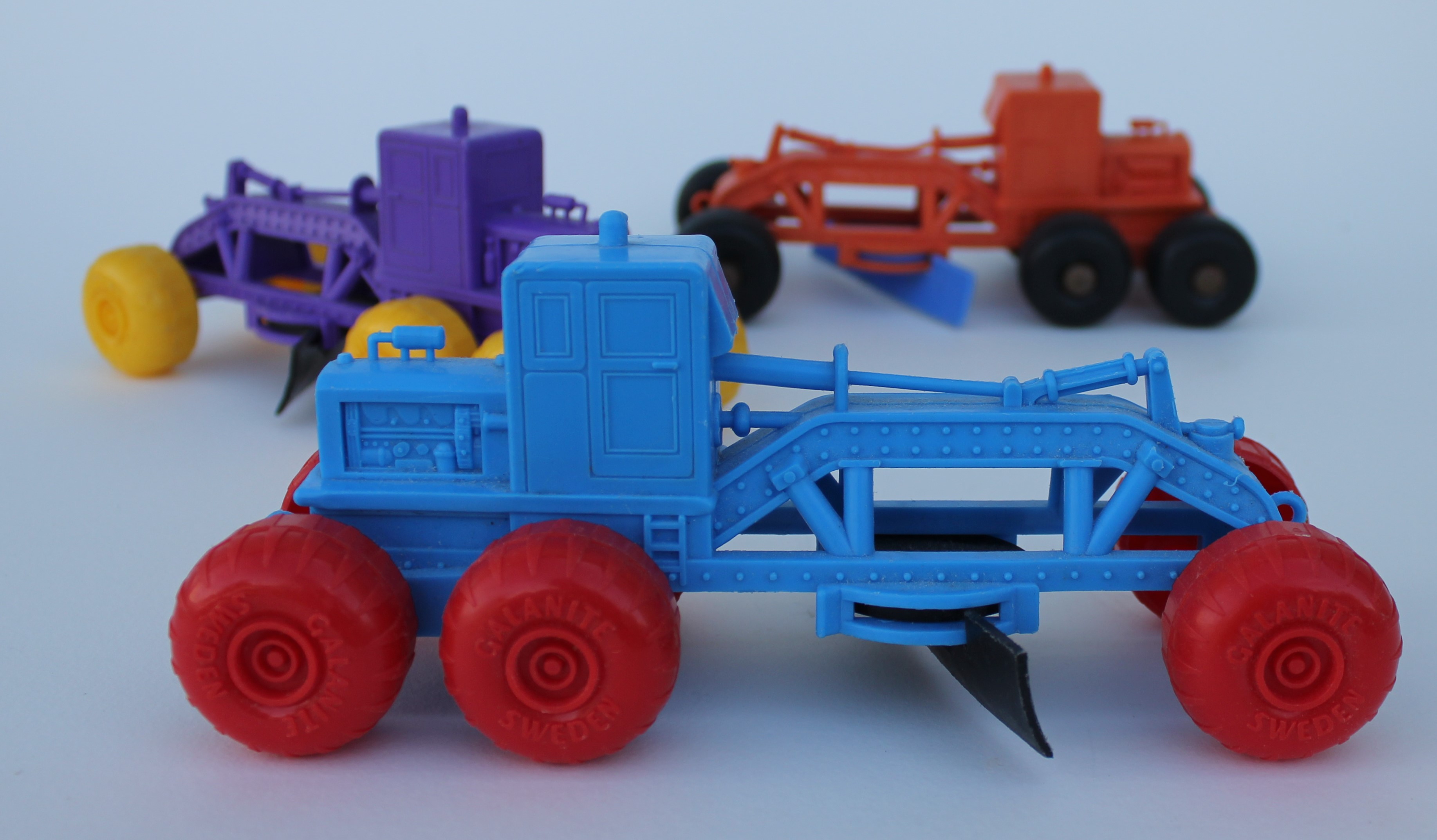 Bland lastbilar, tankbilar och olika arbetsfordon så har jag hittat 31 olika modeller som har gjorts av Galanite. Många av dessa modeller är helt omärkta, oftast hade de bara ett klistermärke som det stod Galanite på. Flera av de något större modellerna består av samma hytt, men där man har monterat på ett lastflak, ett dumperflak, en tank eller stege.